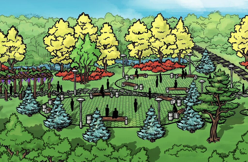 - plantarea a 390 de arbori, peste 1.000 de arbuști și înierbarea unei suprafețe de aproximativ 18.000 mp.