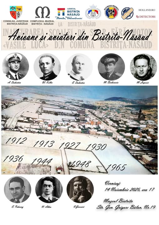 Complexul Muzeal Bistrița-Năsăud, împreună cu Asociația Prospectorii Istoriei și partenerii HobbyZone, Asociația Militarilor Veterani și Veteranilor cu Dizabilități Sucursala Bistrița și RoDetectors, invită publicul la vernisajul expoziției temporare „Avioane și Aviatori din Bistrița-Năsăud”.