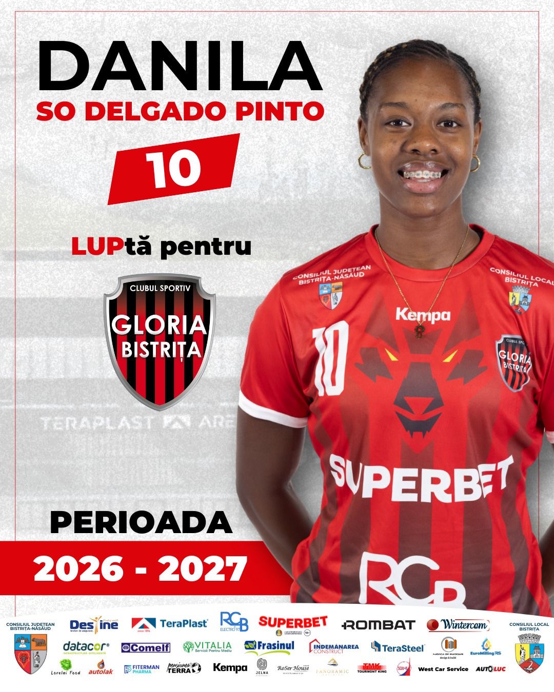 Gloria Bistrița își consolidează lotul pentru sezoanele următoare și anunță prelungirea unuia dintre cele mai explozive nume din echipă: Danila Patricia So Delgado Pinto rămâne în roșu și negru și pentru sezonul 2026–2027.