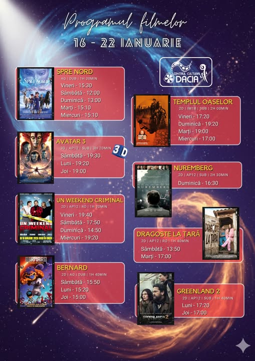 Programul filmelor din perioada 16 – 22 Ianuarie