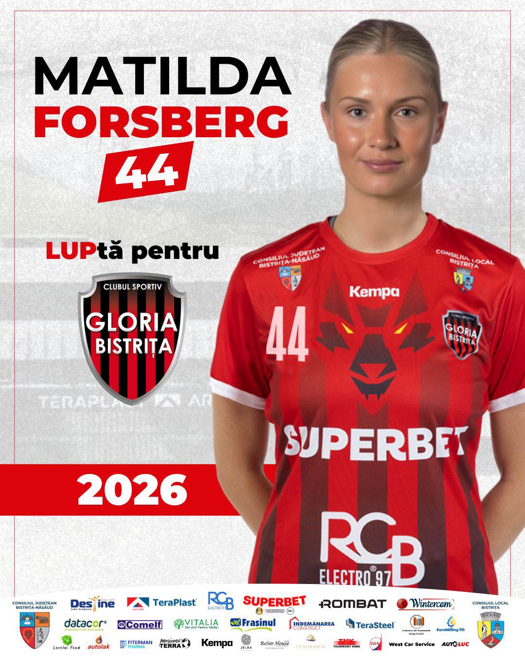 Sportiva a anunțat că va evolua pentru Gloria Bistrița până la finalul sezonului și a precizat că este pregătită să intre rapid în ritmul competițional, în ciuda faptului că mutarea s-a produs într-un timp foarte scurt. Matilda Forsberg joacă pe postul de extremă dreapta și își propune să contribuie decisiv la îndeplinirea obiectivelor echipei.